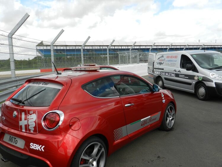 Continuing their association with Alfa Romeo at the UK rounds of the World Superbikes, Autovaletdirect, for a second time this year and since 2008, supplied another two franchisees to prep and maintain the show cars on the main stand and through free practice, qualifying and race day, prep and maintain the Medic, VIP, Winner and Safety cars.