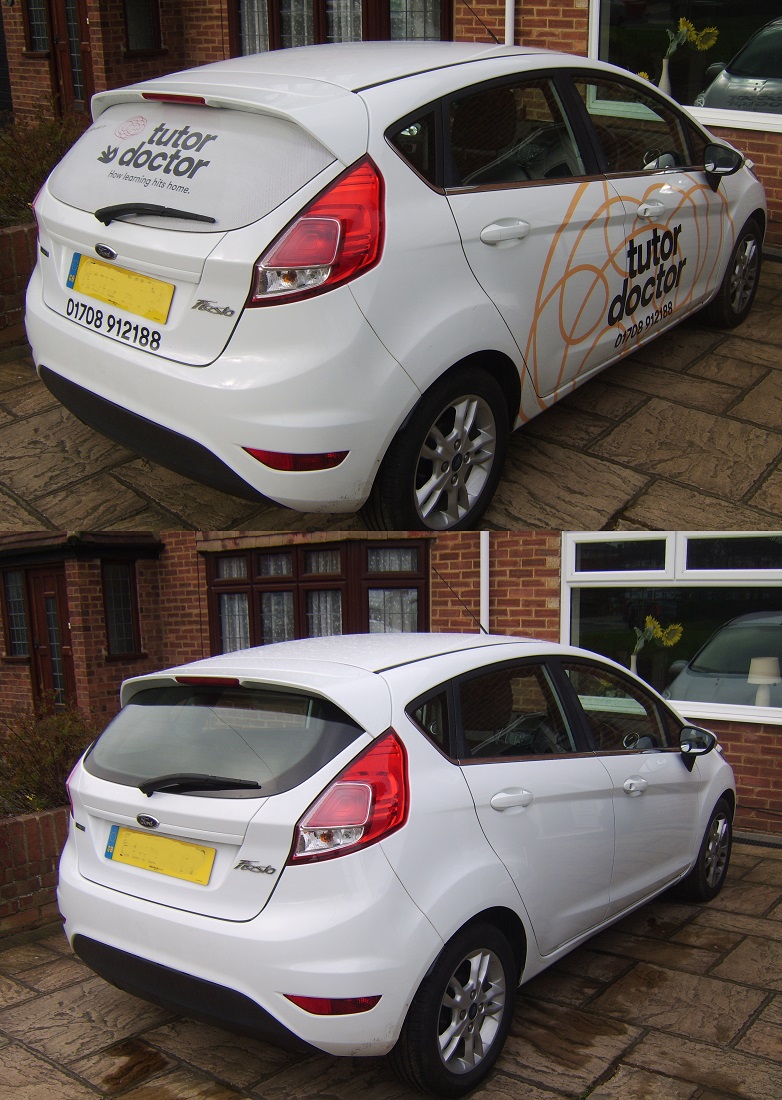 Vinyl decal removal and glue with finishing polish to Ford Fiesta in Upminster, East London.