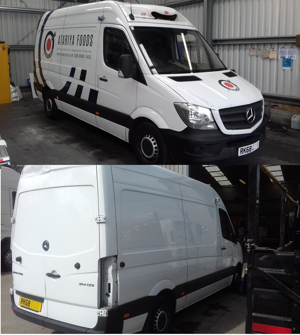Vinyl decal removal and glue with finishing polish to Mercedes van, UK.