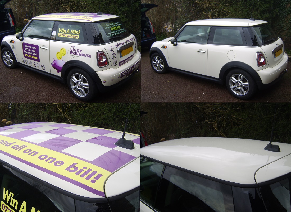Full vinyl graphics removal and fininshing polish to Mini in Surrey.