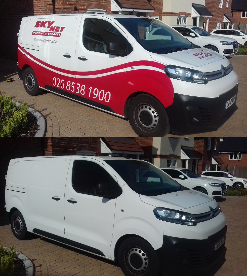 Vinyl sign, graphics, glue removal and finishing polish to Citroen Relay Van, Horley Surrey.