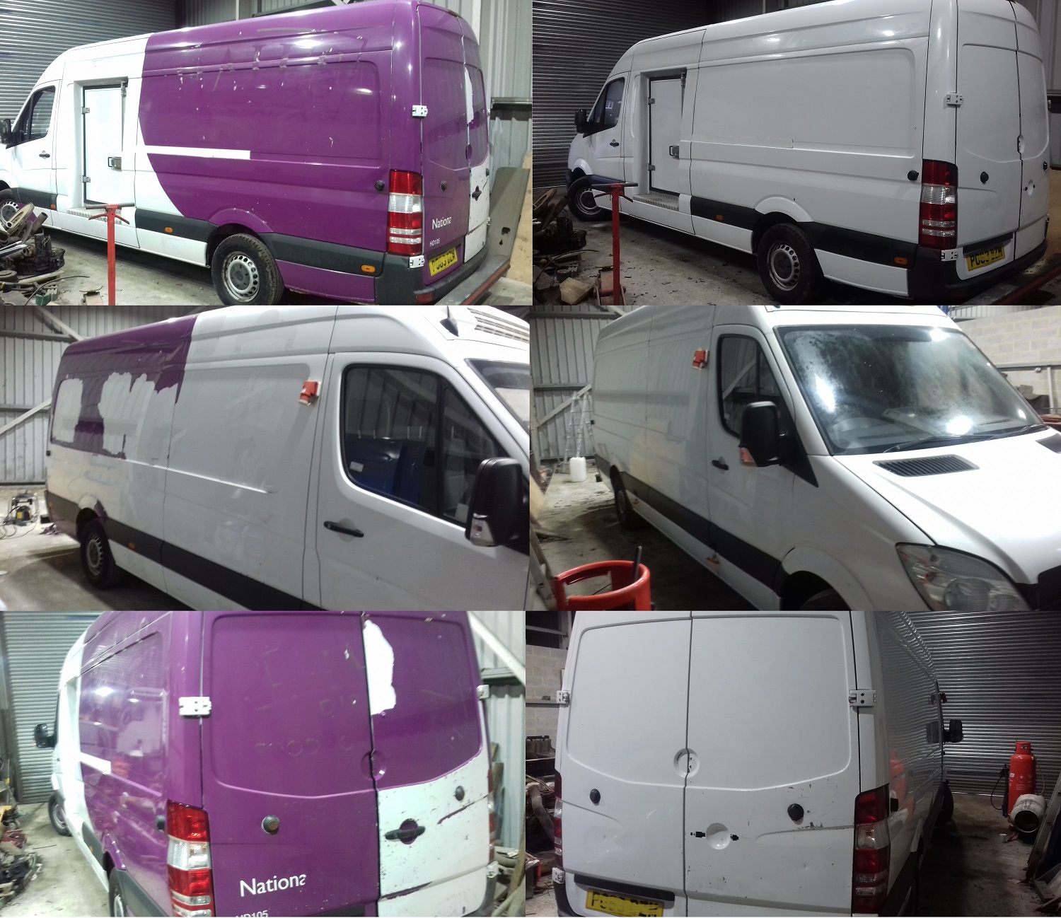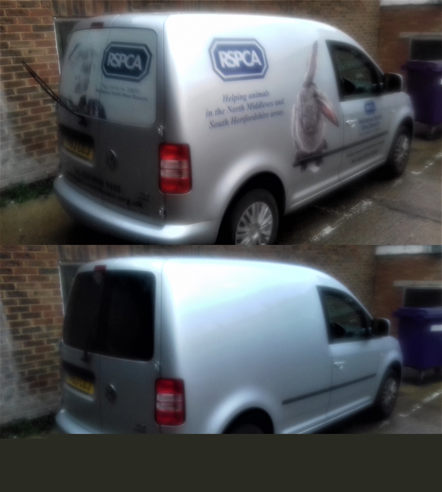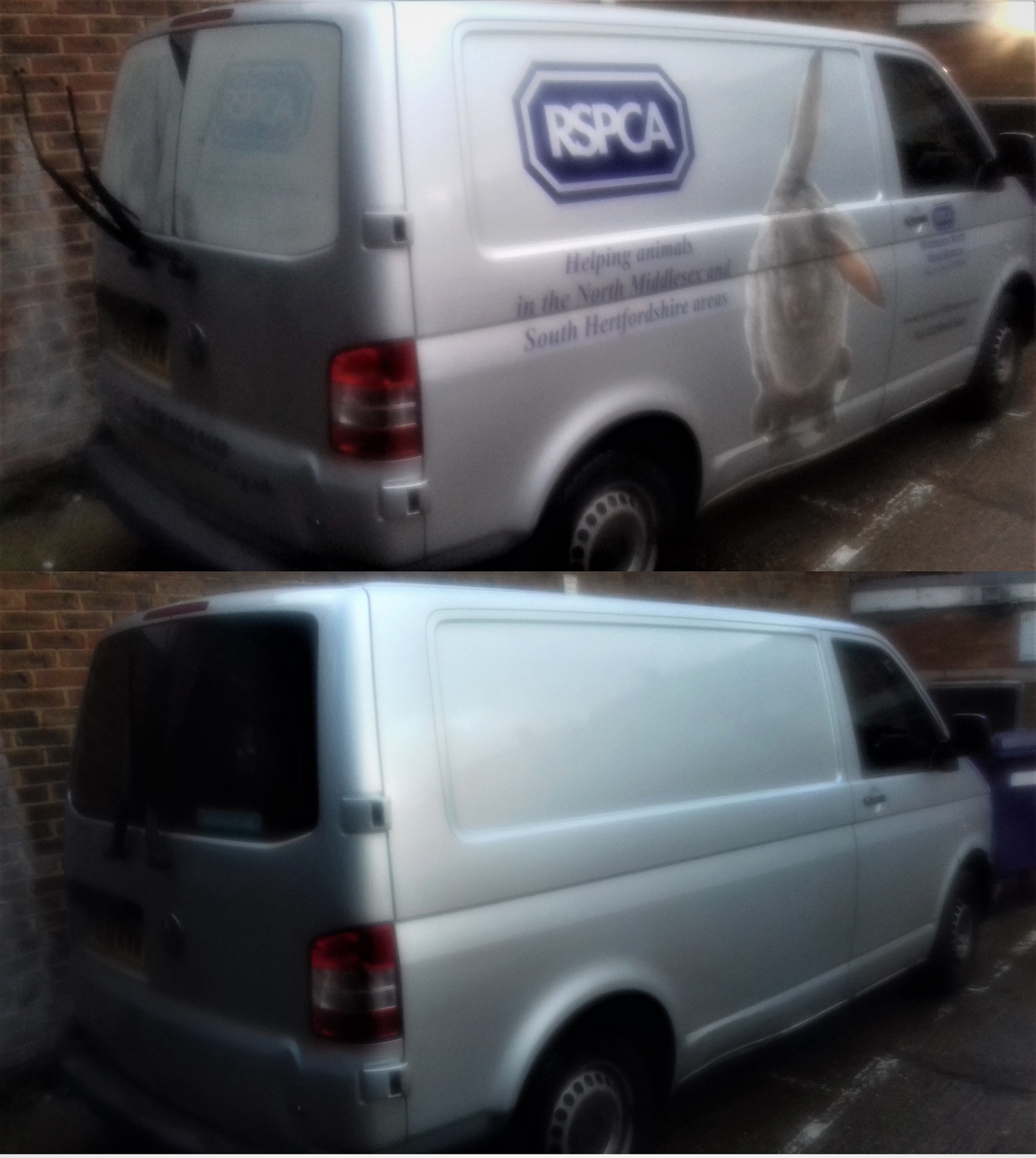 Vinyl graphics removal and de-branding with finishing polish for 2 RSPCA vans UK.