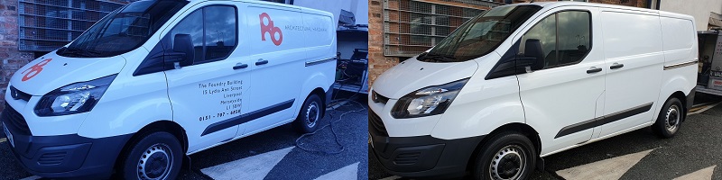 Full sign writing and glue removal in Liverpool