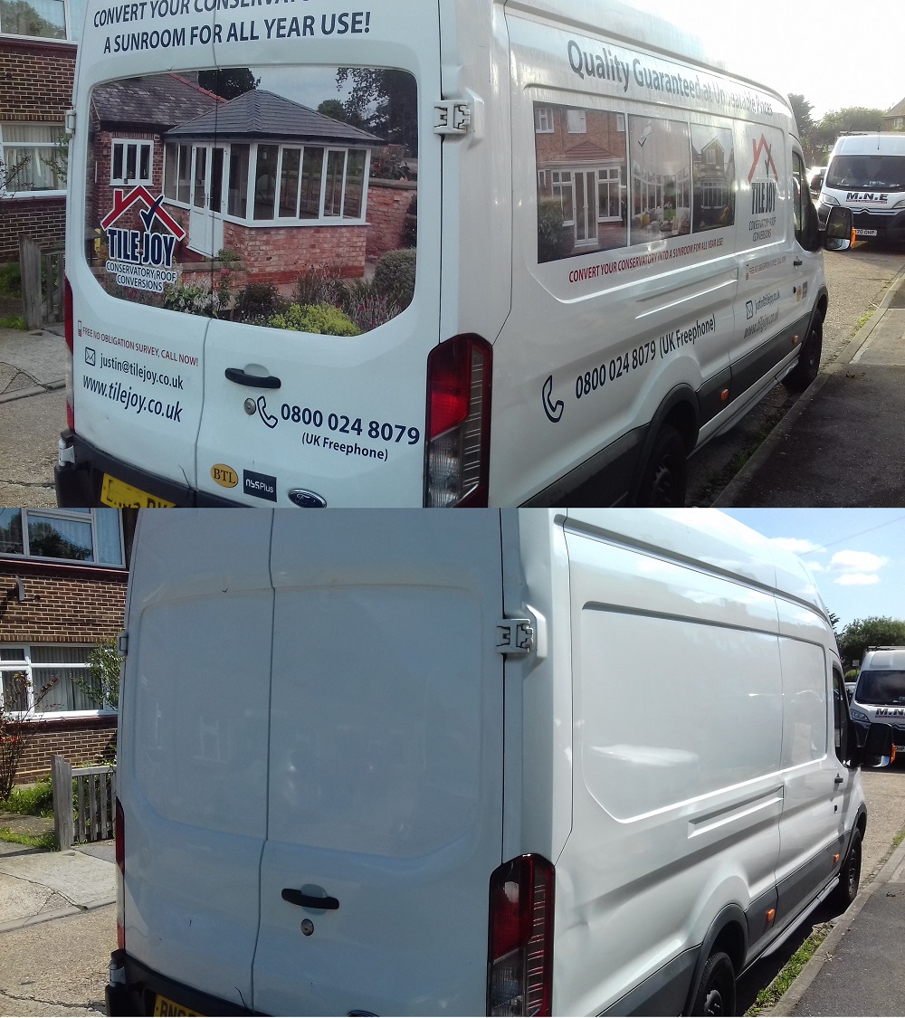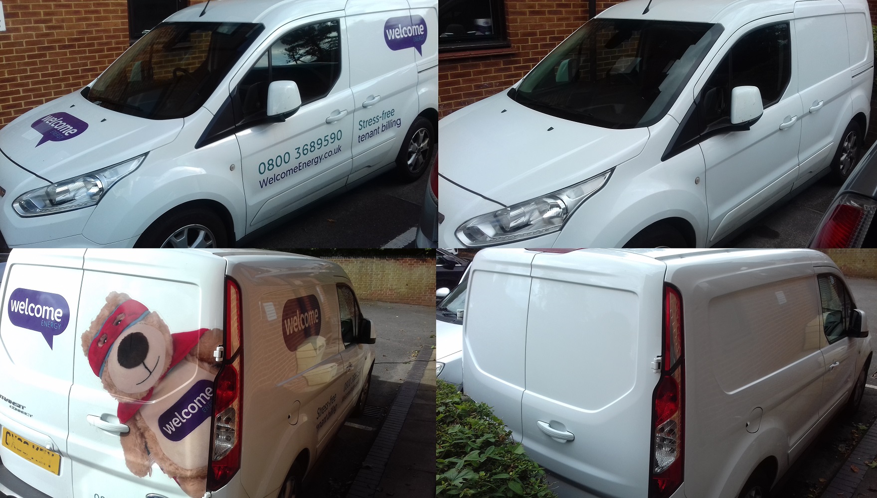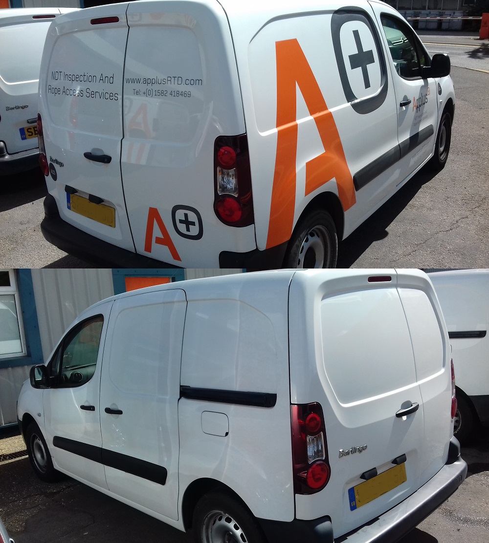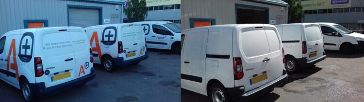 Vinyl sign removal and finishing polish to vehicle fleet in Luton, Bedfordshire.