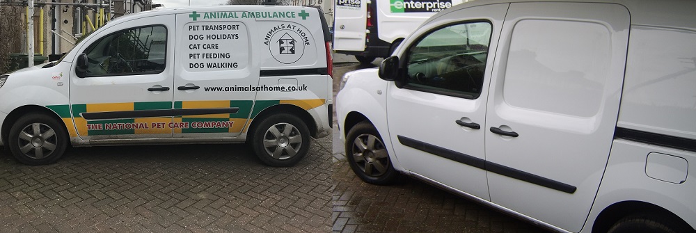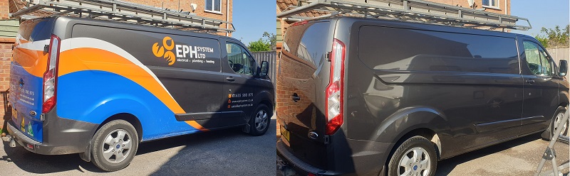 Full vinyl sign with wrap removal and finishing polish in Ilford.