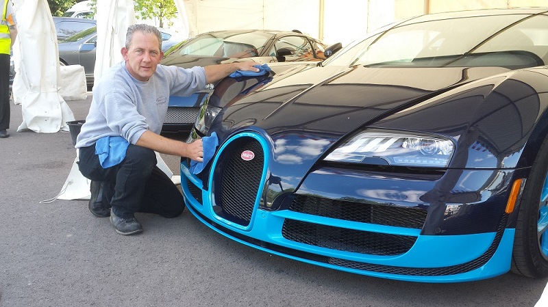 Cheltenham and Tewkesbury Father and Son franchisees, Richard and Matt valeted and maintained three Bugatti’s at the La Vie en Bleu 2013 for the Bugatti owners Club including the £1 million plus Bugatti Vitesse.
