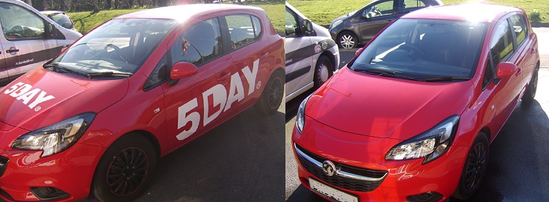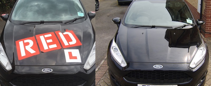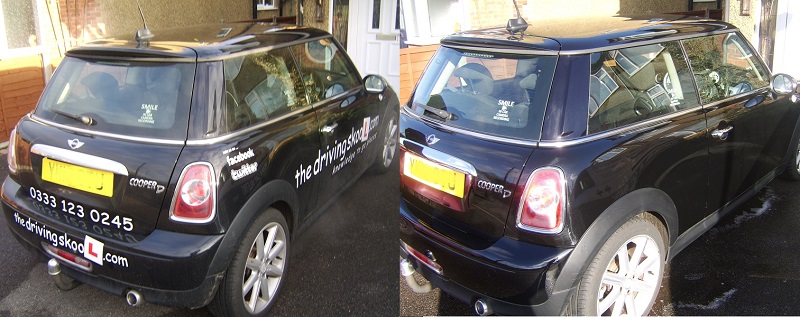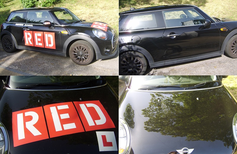 Full sign removal and finishing polish to Red Driving School Mini in Brighton.