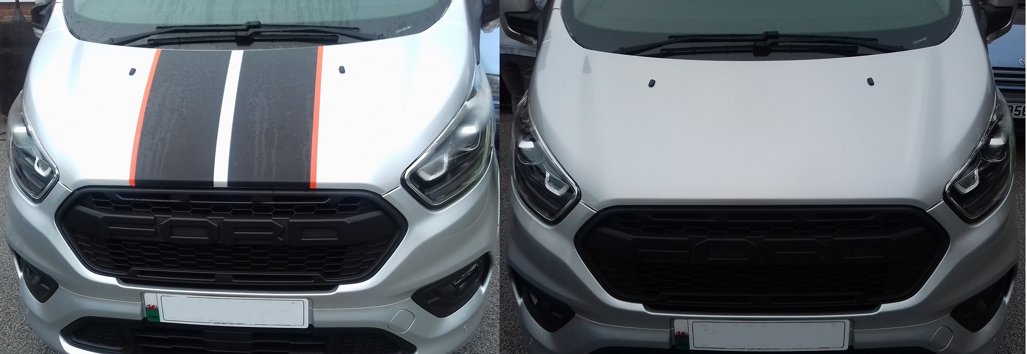 • Our technicians use our unique eco-friendly safe vinyl removal system developed over many years that ensure a safe, quick and effective removal of all types of vinyl stickers, stripes, decals and logos without the use of damaging heat guns.