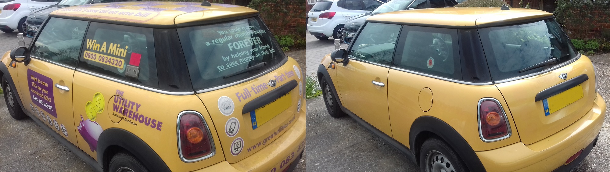 Autovaletdirect have developed techniques and methods for the removal of all types of vinyl stickers that are safe, clean and effective. The process is unavoidably labour intensive and without the expert knowledge and tools, this type of work can become problematic; however, our highly trained mobile technicians ensure that the graphics and glue are removed as efficiently as possible.